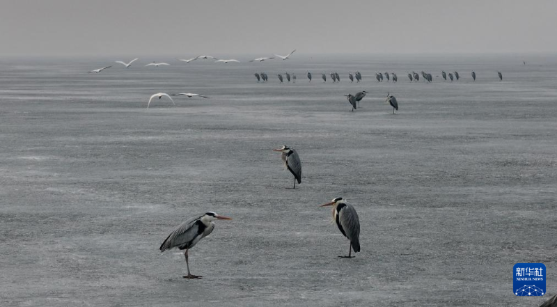 近日,大批候鸟飞抵松花江哈尔滨段江面。各种候鸟在冰面上休息,在水中嬉戏、觅食,尽显春之生机。