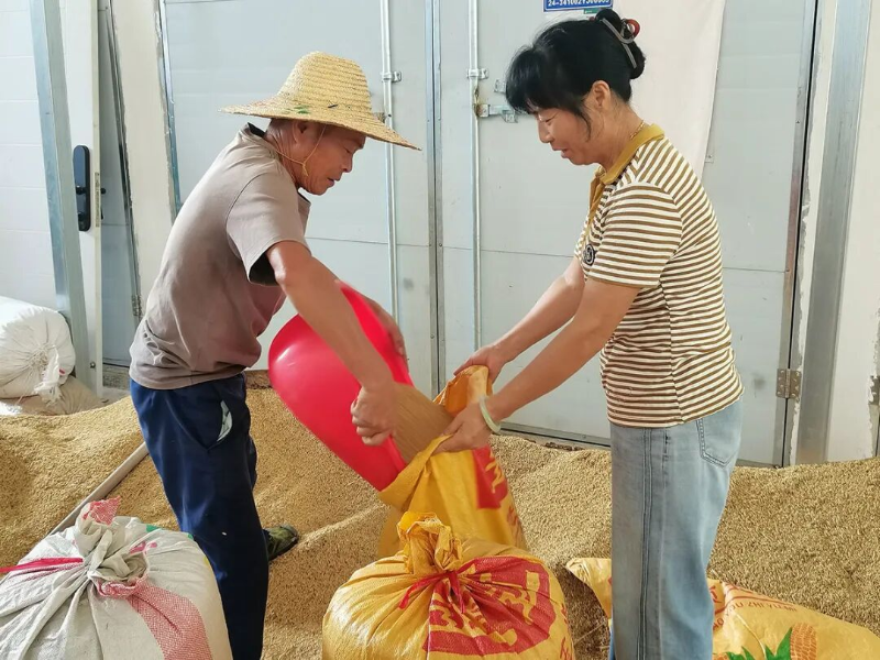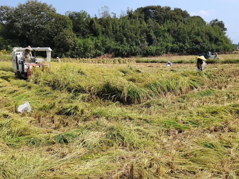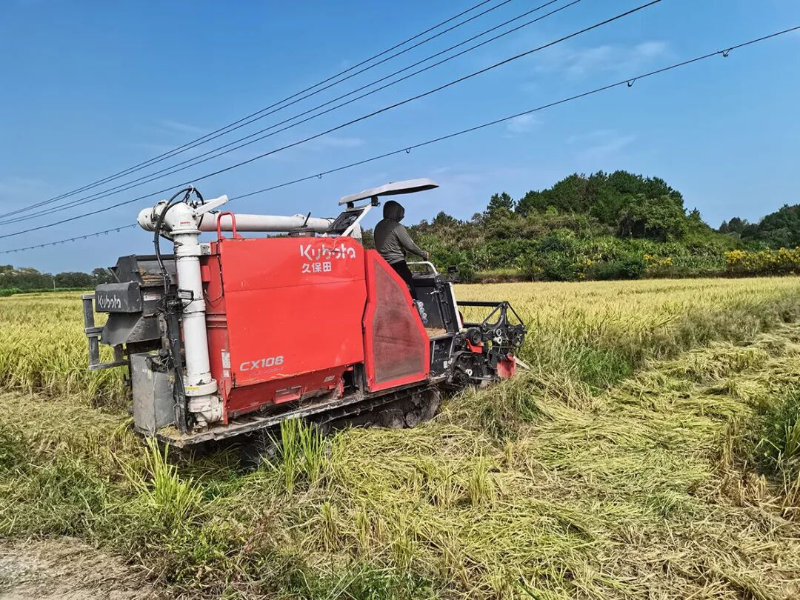 为确保粮食丰产丰收、颗粒归仓。雅馨轩生态农场的稻田里,收割机正开足马力来回穿梭,发出轰鸣,一簇簇饱满的稻穗被快速卷入其中,收割、脱粒、输出等工序一气呵成,化作一袋袋沉甸甸的稻谷。在另一边工作的还有驾驶拖拉机运送粮食,有的将稻谷摊开晾晒,还有的忙着将晒干的稻谷装袋入库,汗水顺着额头滑落,却挡不住他们脸上洋溢的丰收喜悦。