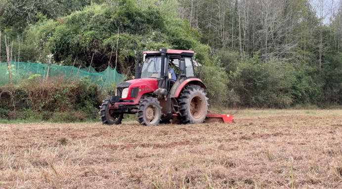 “之前我们一共种植了有380亩水稻,现在已经收割完毕了,正在进行土地翻耕。接下来将使用无人机播种油菜籽,大约3~5天播种完成。”江村徽兵园合作社负责人陈夏军说。